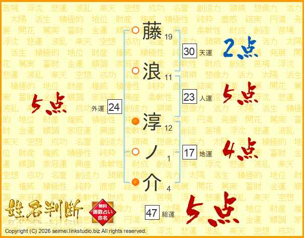 藤浪淳ノ介さんの総運は47画の5点!