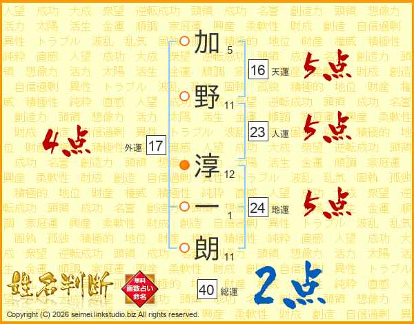 加野淳一朗さんの総運は40画の2点!