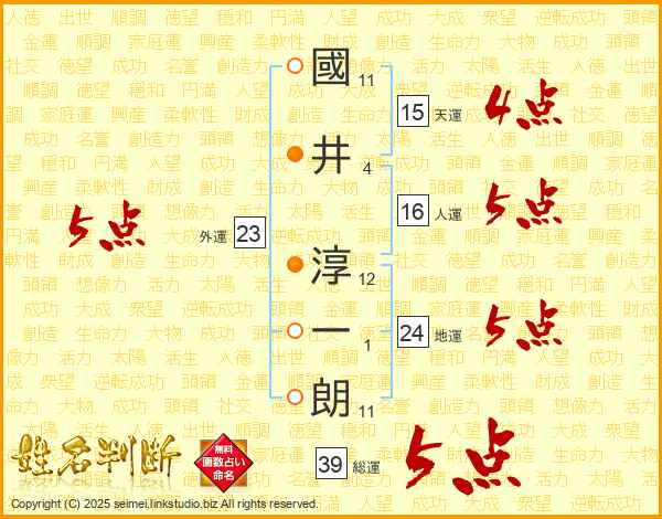 國(11画)井(4画) 淳(12画)一(1画)朗(11画)