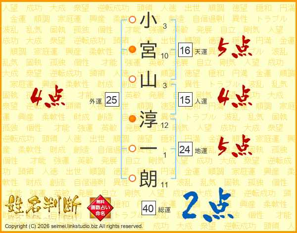 小宮山淳一朗さんの総運は40画の2点!