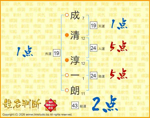 成清淳一朗さんの人運は24画の5点!