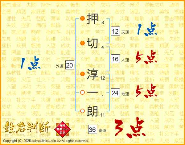 押切淳一朗さんの総運は36画の3点!