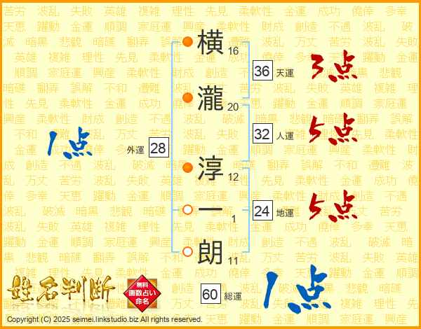 横瀧淳一朗さんの総運は60画の1点!