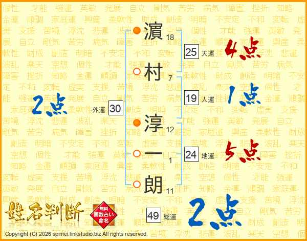 濵村淳一朗さんの天運は25画の4点!