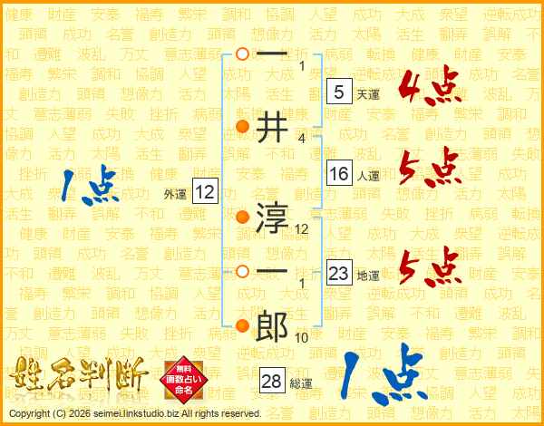一井淳一郎さんの総運は28画の1点!