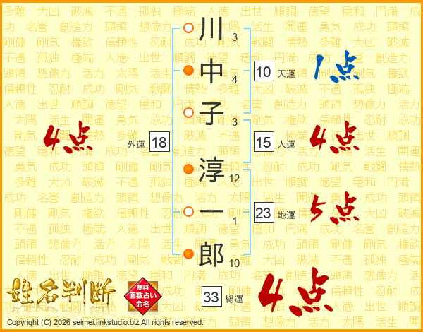 川中子淳一郎さんの総運は33画の4点!