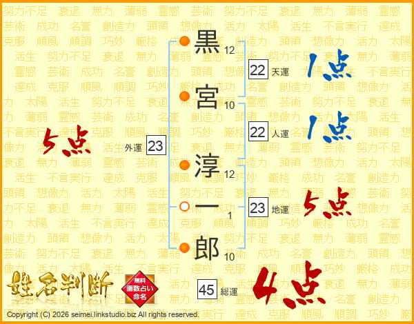 黒宮淳一郎さんの総運は45画の4点!
