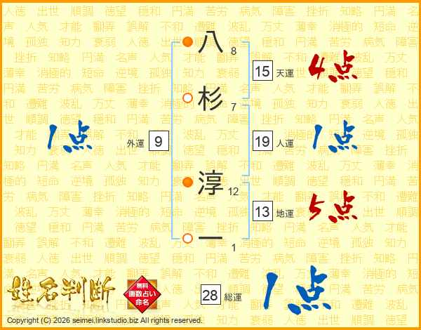 八杉淳一さんの総運は28画の1点!