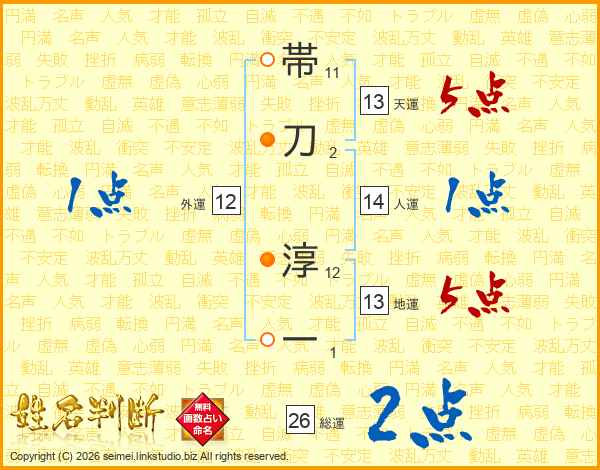 帯刀淳一さんの天運は13画の5点!
