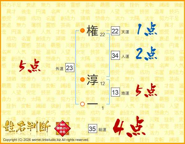 権淳一さんの総運は35画の4点!