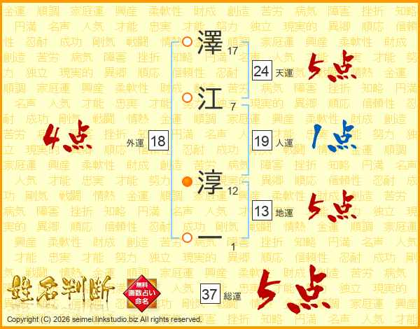澤江淳一さんの総運は37画の5点!