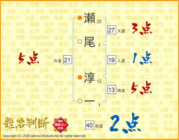 瀬尾淳一さんの天運は27画の3点!