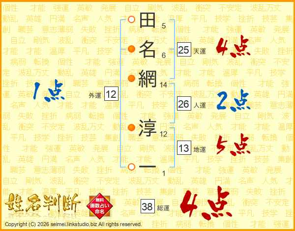 田名網淳一さんの天運は25画の4点!