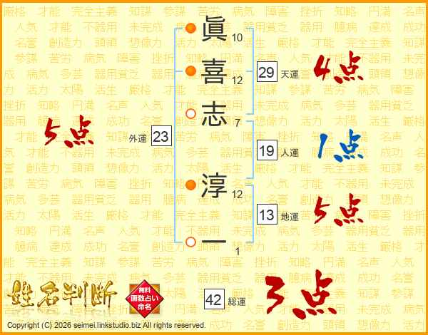 眞喜志淳一さんの天運は29画の4点!