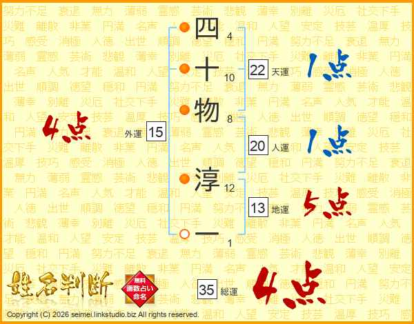 四十物淳一さんの総運は35画の4点!