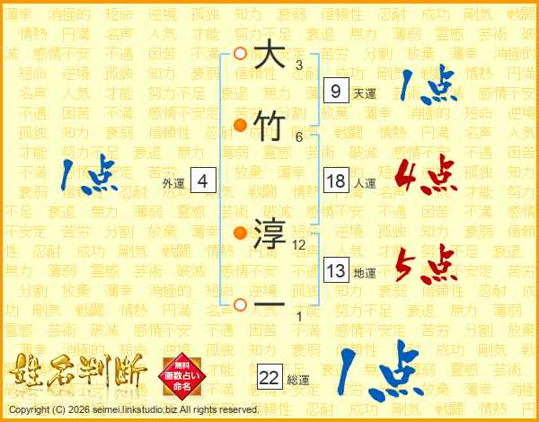 大竹淳一さんの人運は18画の4点!