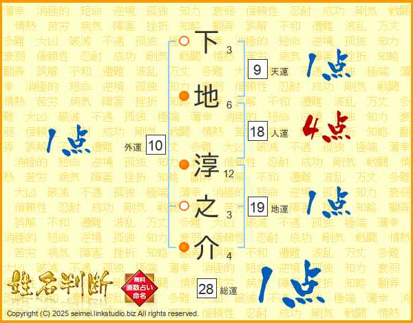 下(3画)地(6画) 淳(12画)之(3画)介(4画)