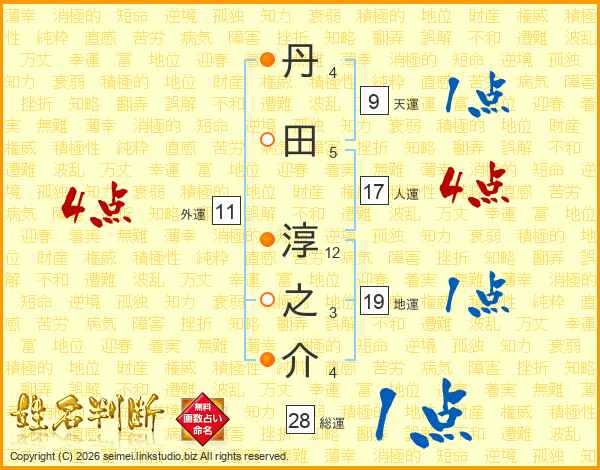 丹(4画)田(5画) 淳(12画)之(3画)介(4画)