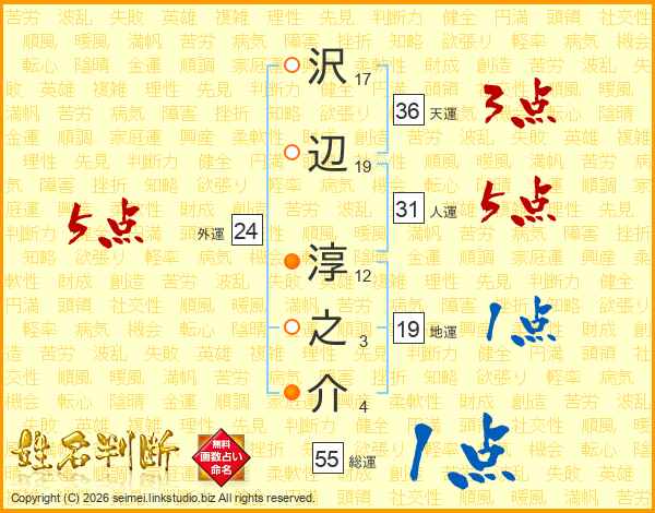 沢辺淳之介さんの外運は24画の5点!