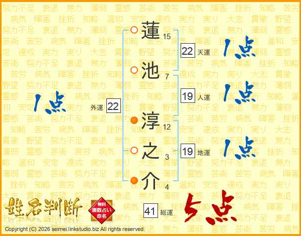 蓮池淳之介さんの総運は41画の5点!