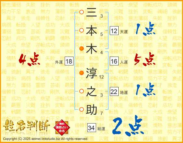 三本木淳之助さんの外運は18画の4点!