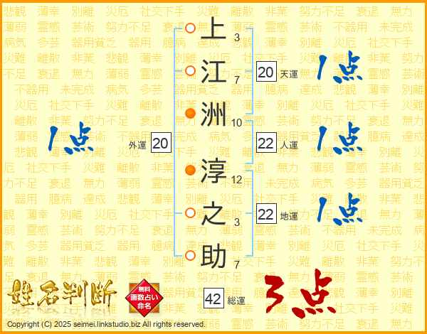 上(3画)江(7画)洲(10画) 淳(12画)之(3画)助(7画)