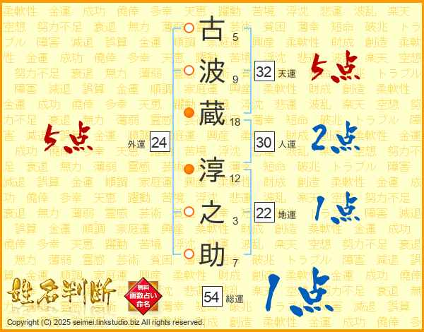 古(5画)波(9画)蔵(18画) 淳(12画)之(3画)助(7画)