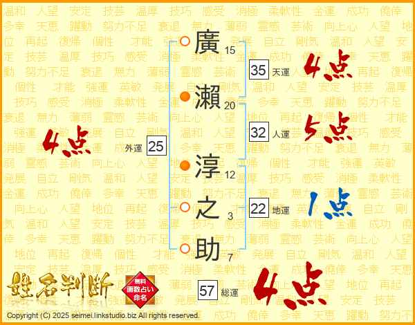 廣瀨淳之助さんの総運は57画の4点!