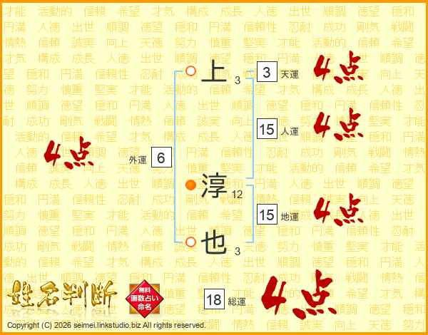 上淳也さんの総運は18画の4点!