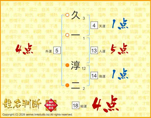 久一淳二さんの人運は13画の5点!