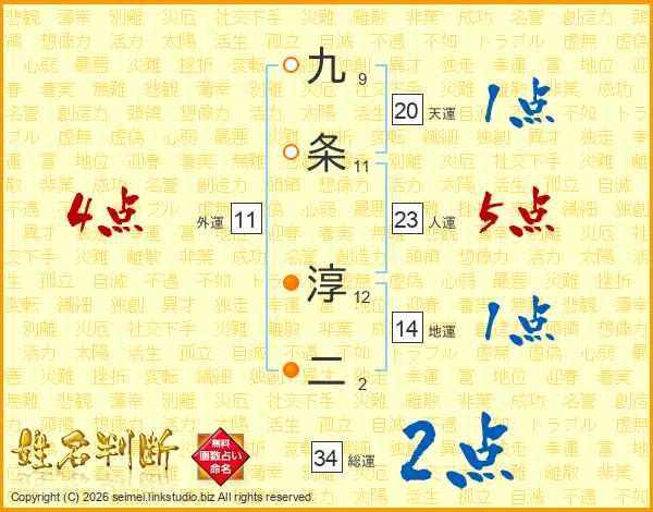 九条淳二さんの総運は34画の2点!