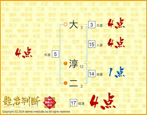大淳二さんの総運は17画の4点!