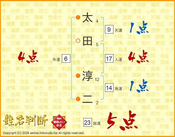 太(4画)田(5画) 淳(12画)二(2画)