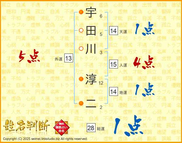 宇(6画)田(5画)川(3画) 淳(12画)二(2画)