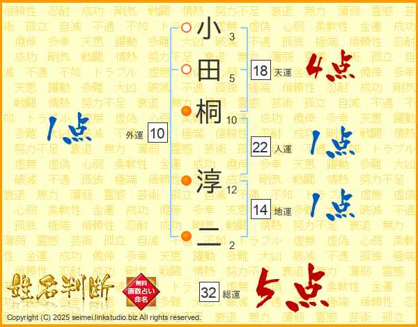 小(3画)田(5画)桐(10画) 淳(12画)二(2画)