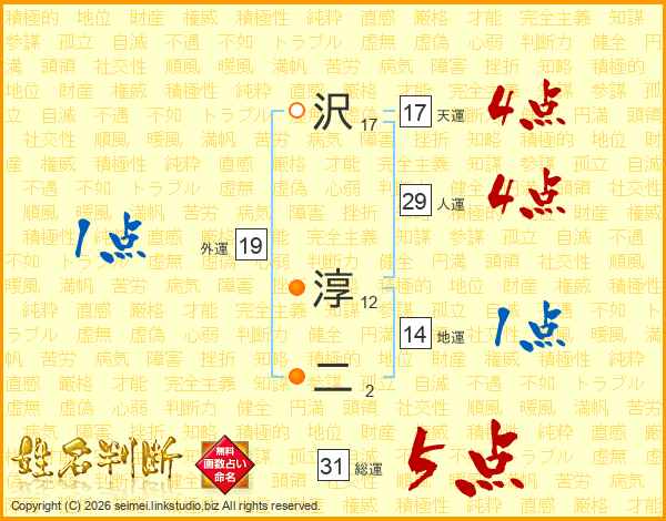 沢淳二さんの総運は31画の5点!