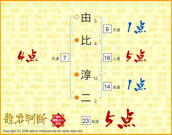 由比淳二さんの総運は23画の5点!