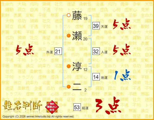 藤瀬淳二さんの総運は53画の3点!