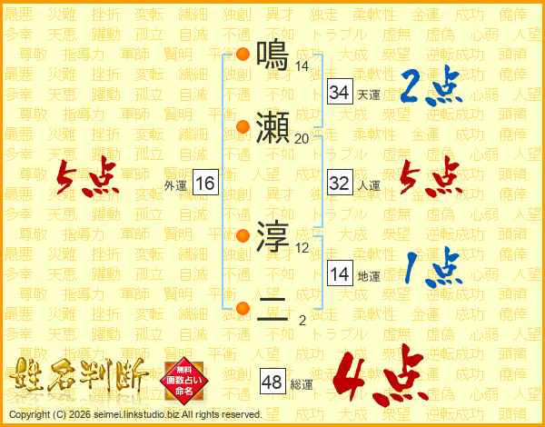 鳴瀬淳二さんの総運は48画の4点!