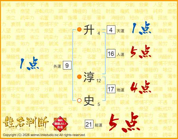 升淳史さんの総運は21画の5点!