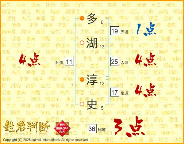 多湖淳史さんの人運は25画の4点!