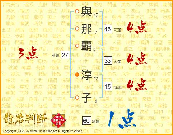 與那覇淳子さんの天運は45画の4点!