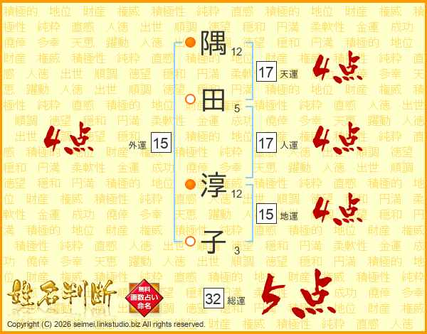 隅田淳子さんの天運は17画の4点!