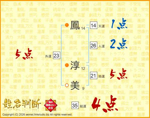 鳳淳美さんの総運は35画の4点!