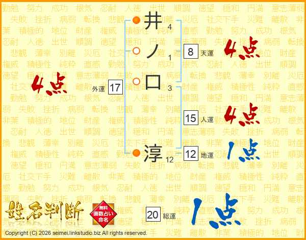 井(4画)ノ(1画)口(3画) 淳(12画)