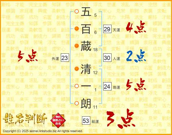 五百蔵清一朗さんの天運は29画の4点!