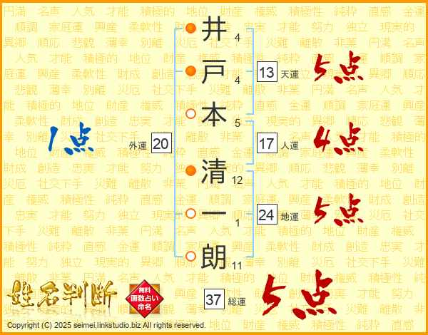 井戸本清一朗さんの総運は37画の5点!