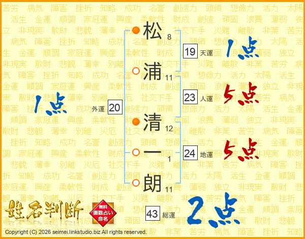 松浦清一朗さんの人運は23画の5点!