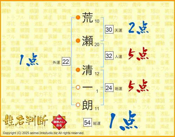 荒瀬清一朗さんの総運は54画の1点!