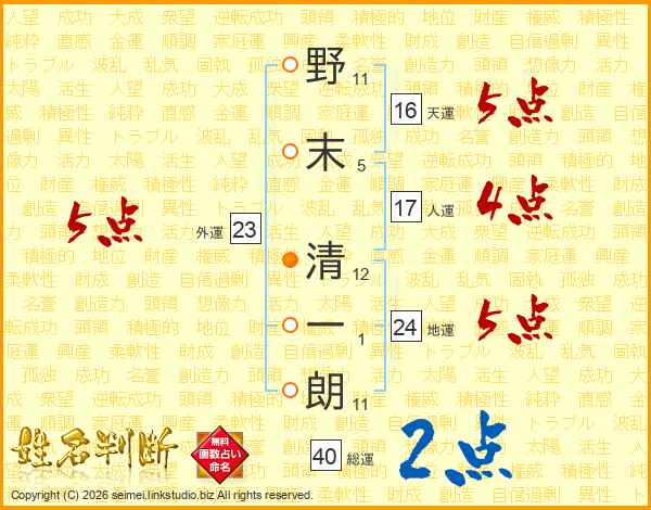 野末清一朗さんの地運は24画の5点!